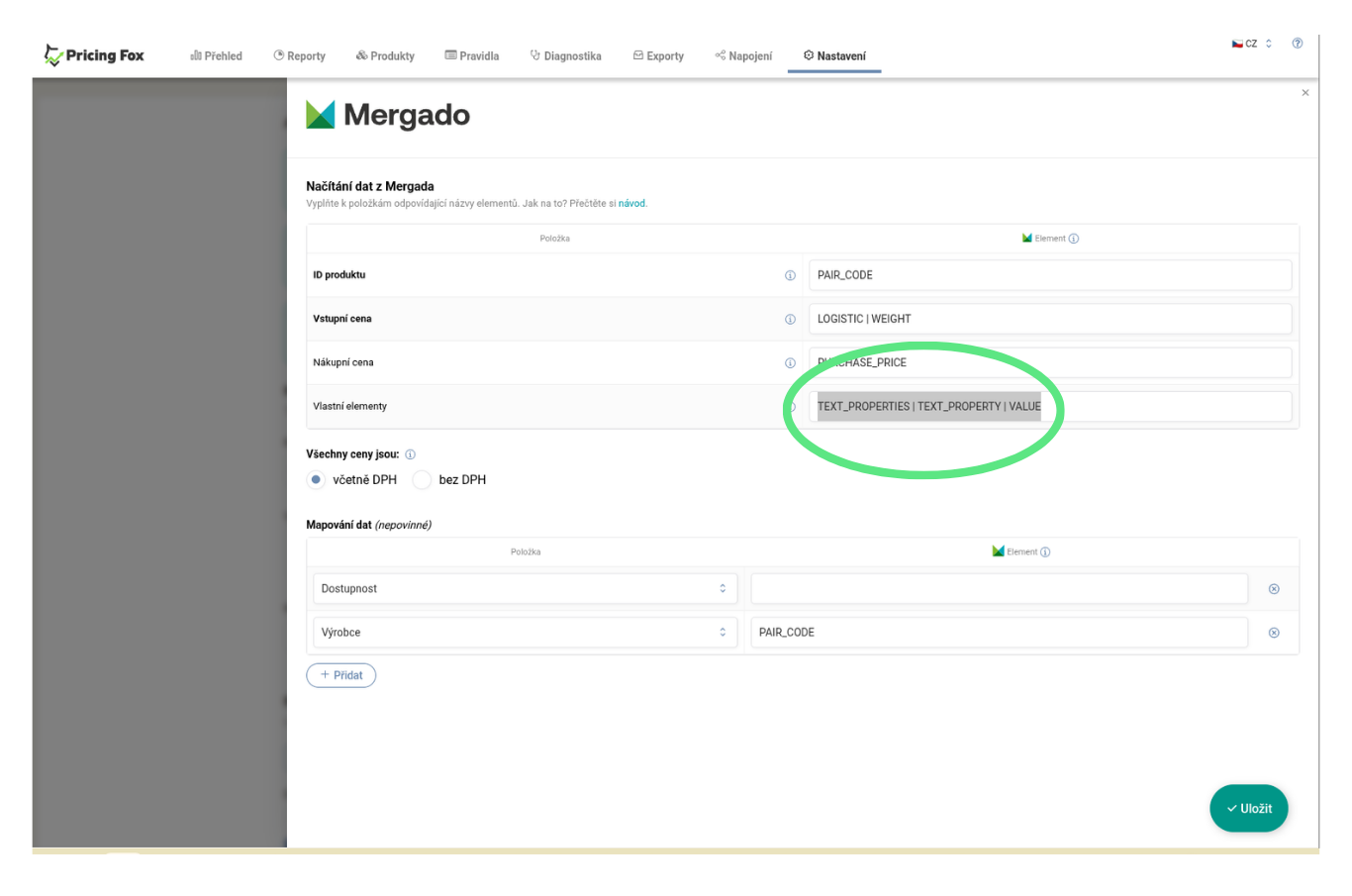 Pro správné manažování dat v Pricing Foxu je potřeba správně si namapovat elementy z Mergada tak, abyste následně s informacemi mohli pracovat nejen při nastavování naceňovacích strategií, ale i při práci s reporty či samotnými produkty a jejich exporty.