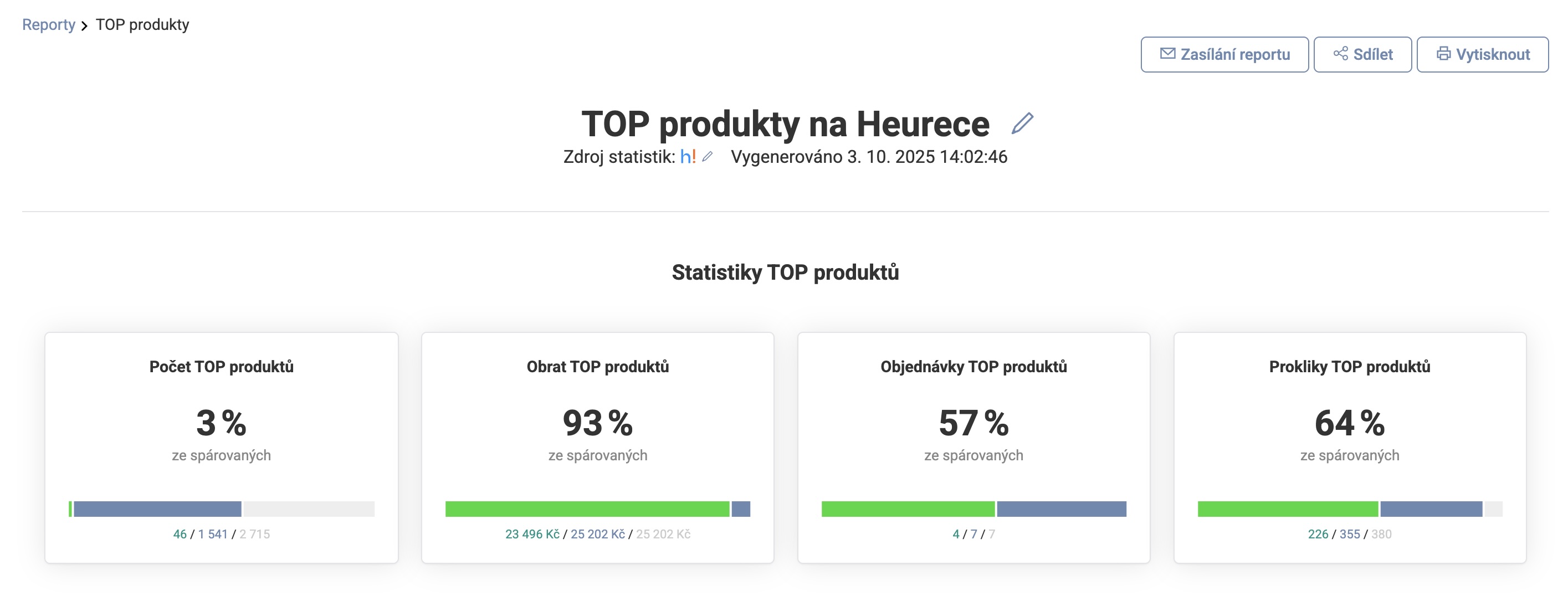 TOP produkty na Heurece jsou ty, které zákazníci nejčastěji vyhledávají a kupují. Pokud je nenabízíte, přicházíte o značnou část objednávek. Díky reportu: